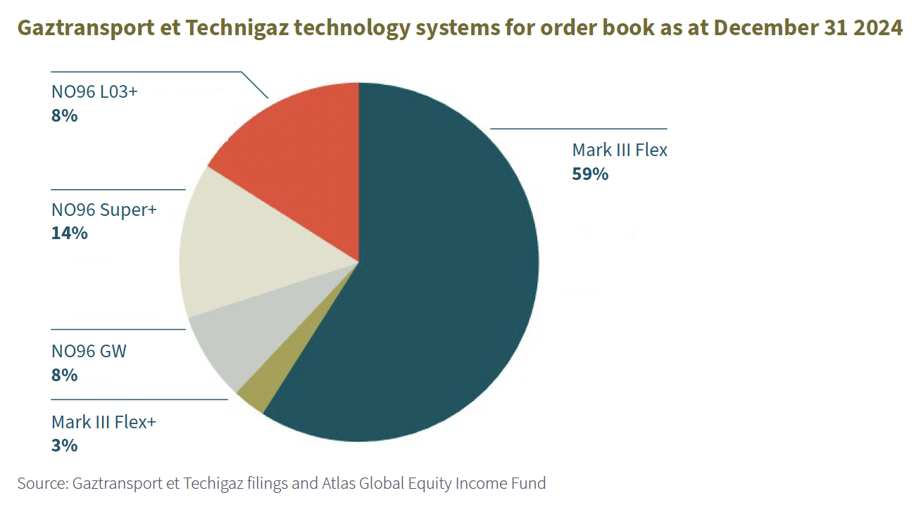 The chart below shows the GTT membrane technology selected in the order book as at December 31 2024.