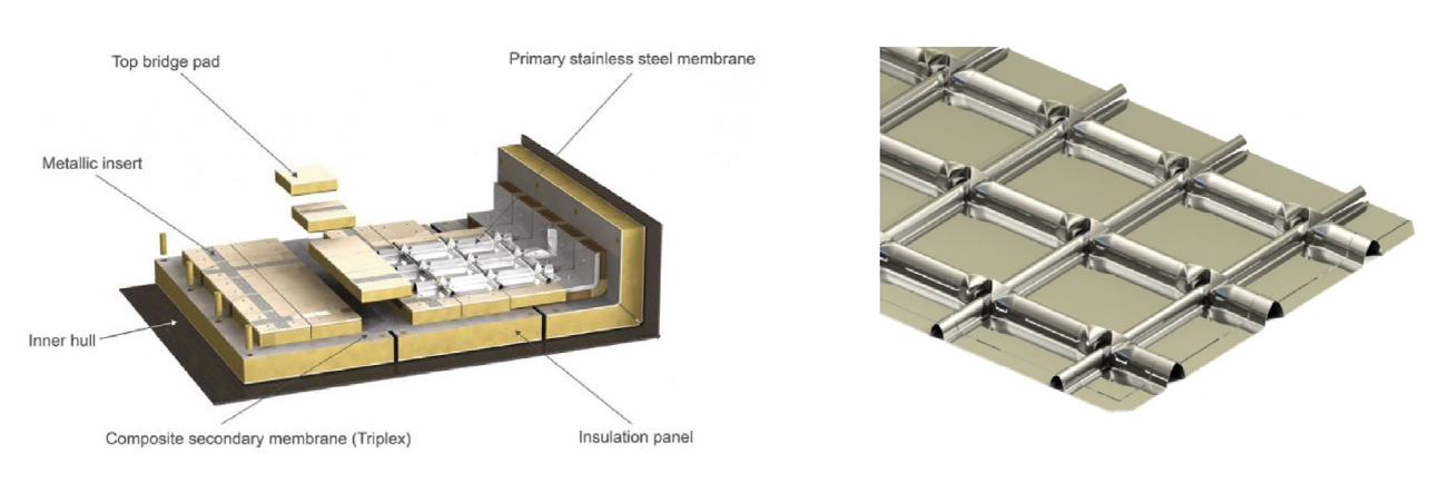 It uses a primary corrugated stainless-steel membrane on top of reinforced polyurethane foam insulation panels, with a composite secondary barrier for full redundancy and safety. It can fit neatly around the inner hull of a tanker.